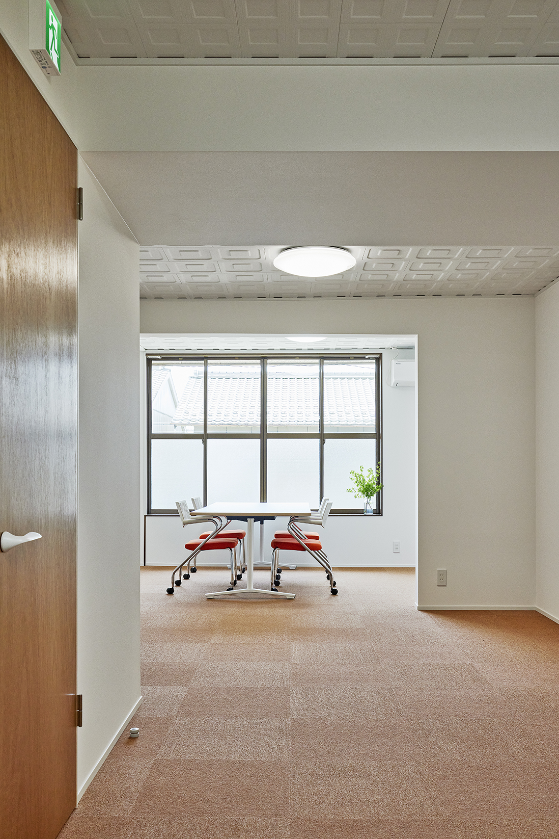 2階は事務所として、どこか懐かしい住宅としての要素がチャーミングに見えるように最低限に手を入れ、機能的な間取りに更新した。
